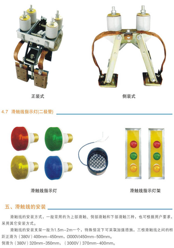 滑觸線的安裝方式,一般常用的為上部滑觸和下部滑觸二種,也可根據(jù)用戶要求,采用其它安裝方式。